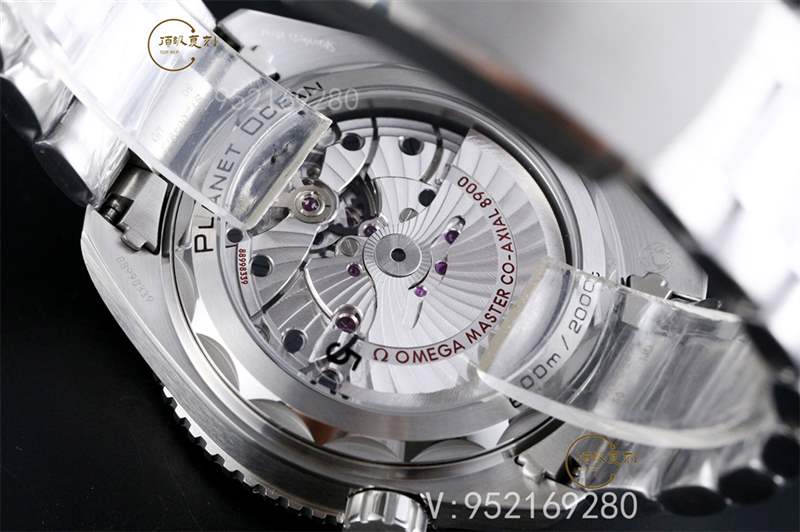 VS自主研发的8900机芯是真正的自主一体式机芯,不再是套甲板,机芯的每颗螺丝和宝石都具备真功能,不再是装饰片;摆轮位置和摆轮大小同原装完全一致,黑化螺丝、摆轮及发条盒,nivachoc避震,让外观细节上保持与原装高度一致;时针快调,通过拨动指针调日历,功能上与正品同步;机芯采用双发条盒,储能可达到和正品一样60-72小时,并且该机芯也非常稳定此机芯的研发突破,寓意着欧米茄海马系列提升至前所未有的复刻高度。