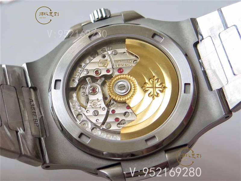 在机芯方面:腕表底盖采用背透设计,机芯搭载的是9015修正版Cal.324机芯,pf工厂为9015机芯,不过并没有像ppf这样做大的改进,mk工厂为海鸥机芯改夹板类似,不过是贴上去的。ppf工厂鹦鹉螺在机芯构造更符合原装结构,目前唯一修正了摆轮方向的百达翡丽Cal.324机芯,剔除底层基础机芯摆轮。夹板经过细致打磨处理,日内瓦波纹做工细致,鸡血色宝石更加鲜艳亮丽,走时稳定靠谱。