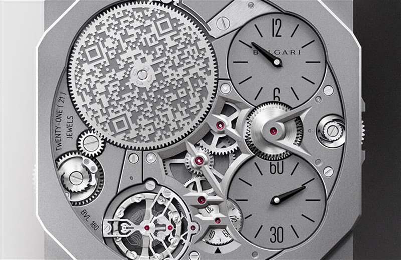 BVLGARI每年要打破一次超薄手表纪录,今年推出的Octo Finissimo Ultra仅仅厚1.8毫米,为了挑战极限,设计上纯粹以追求薄度为原则,舍弃了传统的表冠还有上链系统,改为以水平旋钮取代,当中所有零件以至机芯,全经过重新设计,在研发过程中竟取得了8项专利技术,这枚新作为BVLGARI于过去9年中第8次打破纪录。