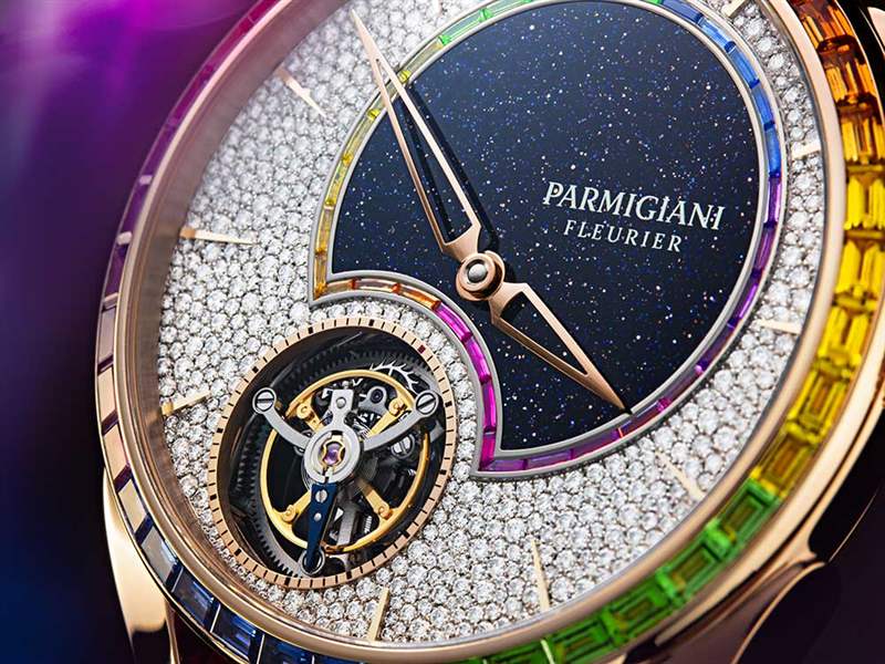 这家以Fleurier为基地的制表师推出了一款华丽的新作,拥有飞行陀飞轮,中心舞台不仅是一道,而是两道彩虹宝石。