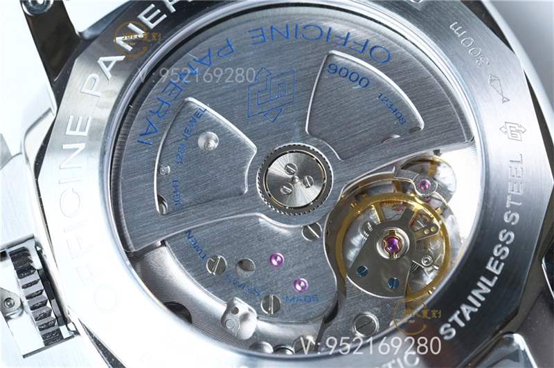 整个背透,我们通过视频可以清晰的看到vs厂采用的是一个p9000机芯,原装也是用的p9000机芯,原装机芯上满发条可以提供72小时的储存动力,作为vs厂p9000机芯是达不到72小时,但是对于一枚主动机芯的腕表,48小时的动力储能也是够用了,
