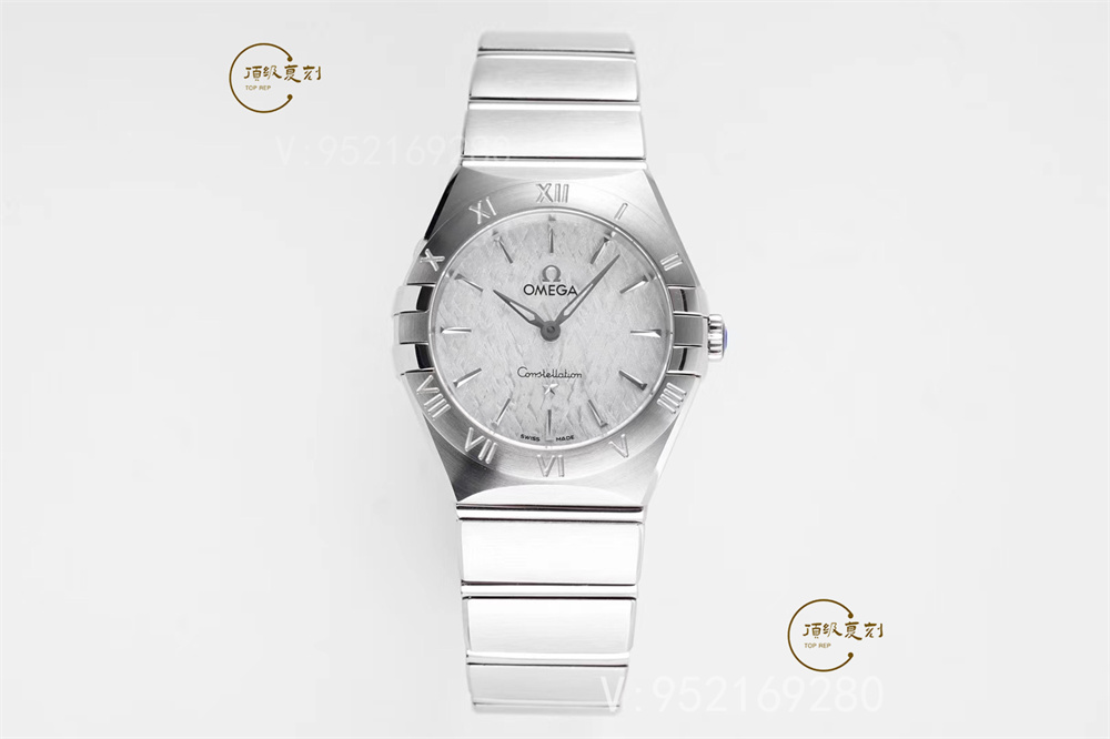 星座在欧米茄品牌当中被誉为颜值最高的系列,托爪的设计,不光在颜值上提升,更是增加了整款手表的防水性,能够更好的保护机芯运作,毕竟一款表机芯是最重要的组成部分,既然这么火的一个系列,在复刻市场肯定是很多厂家必争的一个地方,尤其是石英机芯款式,石英机芯说白了就是电子机芯,复刻表基本都是进口瑞士石英机芯,这种机芯成本低,而且稳定性比机械机芯更好,操作更加方便,不需要每天上链,调好时间就可以正常走时了,不用担心走时不准,没电了更换电子就可以。