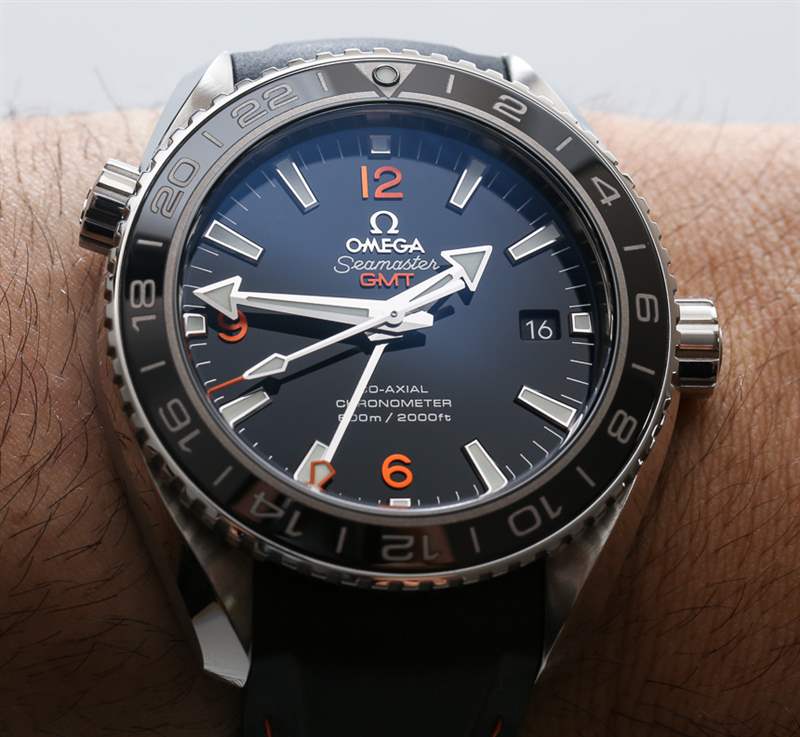 欧米茄也真的为大家打造了一只欧米茄海马系列海洋宇宙。除了一系列颜色和表盘样式外,还有三针、计时码表和 GMT 型号可供选择。后者,也就是我今天评测的,是欧米茄海马系列海洋宇宙的最新款,于2013年发布。除了增加了GMT复杂功能外,它还在现有的42和45mm宽表款的基础上增加了第三个表壳尺寸. GMT 的宽度为 43.5 毫米,在我看来,它是欧米茄海马系列海洋宇宙腕表的完美尺寸。你知道吗,欧米茄的很多人都同意这一点。他们产品开发团队的人和CEO都觉得这碗海马粥很适合他们。虽然 42 和 45 毫米宽的 Planet Oceans 没有什么值得嘲笑的,但我真的很喜欢这个中等尺寸的型号。哦,只是为了澄清,
