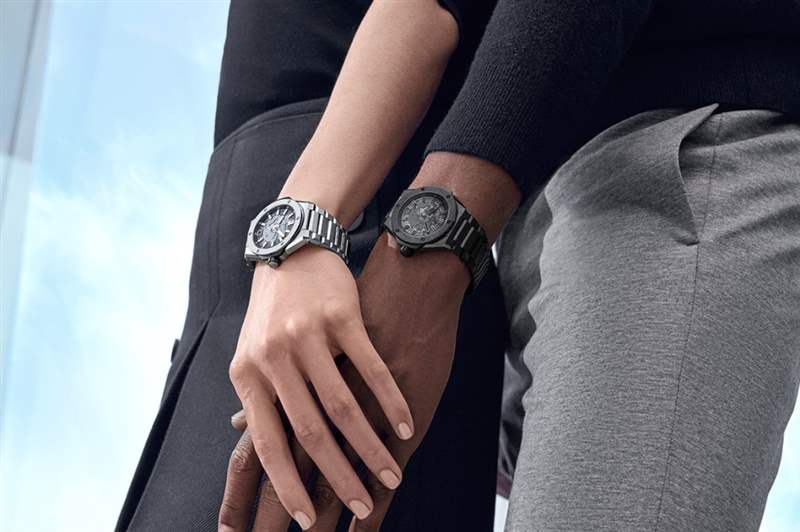 今年Hublot推出了很多不同物料打造的新表,例如最新的Big Bang Integral系列,备有钛金属、黄金与及黑陶瓷型号,图中女士配戴的正是钛金属,而男士配戴的是黑陶瓷款式,虽然截然不同的物料散发着截然不同的感觉,但始终是出自同一系列及款式,仍然相当配衬。新表属大三针,所以腕表名为Time Only,也是系列首次带来40mm尺寸。整体设计水准甚高,相信这款运动表会大受欢迎。