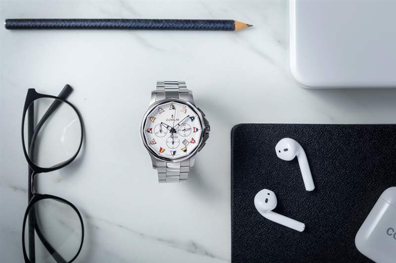喜欢大海的,相信会特别喜欢Corum的Admiral 海军上将,系列以1957年开赛的海军上将杯帆船赛为名。今年最新的Admiral 42 Chronograph,不只设计流露海洋气息,价钱也继续亲民;而腕表最抢镜的,无疑是表面的海事旗时标。
