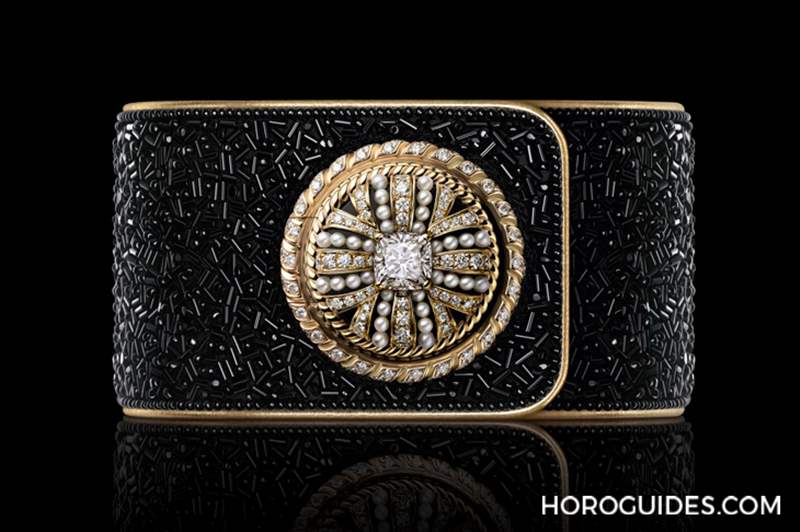 Mademoiselle Privé Pique-Aiguille刺绣图腾腕表,表径55mm/18K黄金、黑色钛金属表壳/高精准石英机芯/时、分显示/限量20只