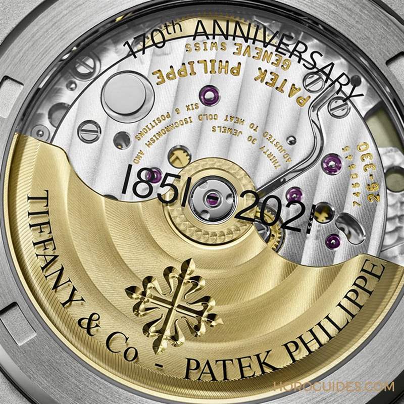 底盖的2021字样还藏有彩蛋。表款搭载26-330 SC自动上链机芯,底盖除了印上170th ANNIVERSARY、1851-2021、TIFFANY & Co. – PATEK PHILIPPE等字样,在2021的数字「1」还印了LVMH,做为祝贺TIFFANY & Co. 加入LVMH Group的隐藏彩蛋。而根据报导中Thierry Stern所说,“I’m very curious to see how long it’s going to take people to discover that there is a secret on every piece,”所谓5711/1A-018的隐藏巧思应该就是指此处,又或者还有其他我们不知道的细节(但可能也只有表主才会知道了)。