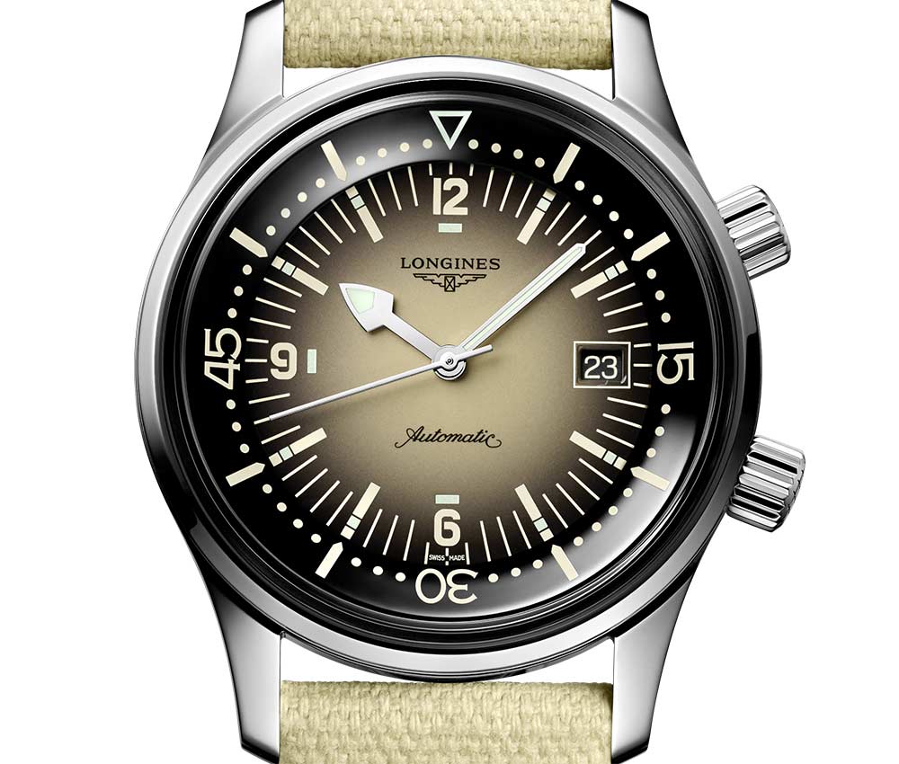 自2007年以来,浪琴表传奇潜水员腕表一直是浪琴表系列的支柱,至今仍牢牢扎根于其时代。虽然它的外观让人想起20世纪60年代的历史模型,其着名的移动环在潜水时非常实用,以避免任何不合时宜的操纵,但由于使用与时俱进的颜色,它已经发展起来。今年,这个有翅膀的沙漏品牌推出了许多新版本。直径42毫米的精钢表壳防水深度达300米,现配备沙质米色或灰灰色渐变漆表盘。36mm型号采用宝蓝色,深勃艮第或淡褐色装饰,也带有渐变色。每枚时计都佩戴在匹配的彩色腕带上。
