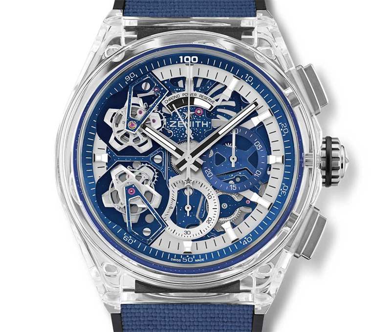 我们怎能不被这些由真力时精心编排的机械芭蕾舞剧所震撼呢?Le Locle的品牌为这些直径46毫米的表壳选择了两款最精致的当代作品,这些表壳完全由蓝宝石制成,彰显了其吸引高级制表界的能力。最初的Defy Zero G模型将我们带入了一个建筑占主导地位的领域。它有点精简的升级唤起了空间。因此,其完全镂空的手动上链El Primero 8812 S机芯和位于6点钟位置的重力控制模块与陨石和砂金石制成的小表盘相结合。在这款星际装饰中,我们发现了偏心的时针和分钟盘,10点钟位置的小秒针和2点钟位置的动力储存指示器。