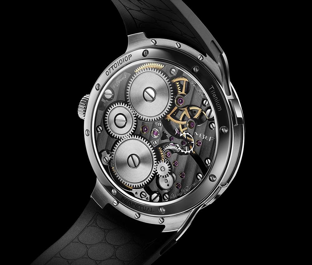 此外,钛合金的传统机器恒动机EVO还具有原始型号的所有特征。表圈已经消失,取而代之的是焊接在表壳中间的全新设计的蓝宝石水晶穹顶。推杆采用薄型,具有细长的矩形形状。而且,现在表冠已拧紧,表壳防水深度达80米。“FlexRing”是一种由单个钢块雕刻而成的环形系统,可吸收多个轴上的冲击。它完美地保护了斯蒂芬·麦克唐纳设计的复杂机芯,并确保大型摆轮保持在原位。