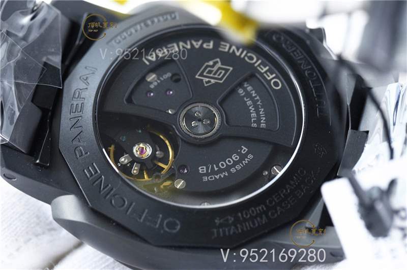2.材质方面,VS厂沛纳海438材质是黑陶瓷一体铸造,不是电镀的,内外一致,包括把头、表扣、底盖、盘面。镜面是蓝宝石材质,背透底盖也一样。黑陶瓷表带和疯马牛皮表带两种,VS表带做的也非常精湛的,市场独家,任何地方都买不到的。